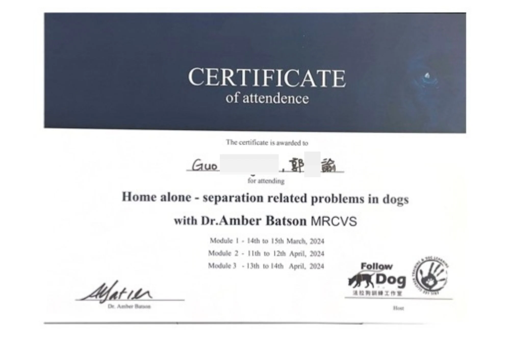 鍋鍋 「你可以有不一樣的選擇!從不同角度看見與思考,將迎來完全嶄新的人狗關係」 自我介紹 遇見第一隻狗狗時,全家人與狗狗因為彼此不了解而產生了很多衝突、 都曾有遭到攻擊到見血的經驗,這讓我們從最初滿懷期待地迎接一隻新成員,轉而充滿無奈和挫折。 上大學時,因緣際會下接觸到正向訓練, 透過觀察狗狗的行為並找出背後的原因, 我發現訓練也可以是有趣的,進而可以改善狗狗的生活品質。 成為一位訓練師, 幫助那些陷在關係困境中的人和狗狗做中間溝通的橋樑創造和諧的人狗關係成為我的志向。 專長 幼犬教養與社會化 行為改善 鬆繩散步 響片訓練 相關經歷 熊爸訓練師培訓營犬類行為訓練師初中級 熊爸訓練師培訓營寵物照護中級資格 2024 TTouch 繃帶線上專題講座 第19屆 CFBI 亞洲專業訓練師培訓課程 英國獸醫 Dr.Amber Batson 犬分離焦慮課 2023 宜蘭大學微學分課程-寵物行為訓練與動物保護 助教 2024 無界塾實驗教育學校國小五年級探索體驗課程講師 2024 英國訓練師 Kirsty Grant 環境豐富化課程 2024 英國行為諮詢師 Daniel Shaw 行為講座-狗狗創傷的神經科學及個案剖析應用 2025 True2Life® Ultimate Recall 課程 熊爸訓練師培訓營犬類行為訓練師初中級 熊爸訓練師培訓營寵物照護中級資格 2024 TTouch 繃帶線上專題講座 第19屆 CFBI 亞洲專業訓練師培訓課程 英國獸醫 Dr.Amber Batson 犬分離焦慮課 2025 True2Life® Ultimate Recall 課程 寵物急救 CPR 訓練結業 毛爸媽相關心得 柯基 2025-12-25 視訊課程能怎麼幫助到有攻擊問題的狗狗呢? Nunu 一家因為 Nunu 有咬人的問題與犬研室的相遇,透過鍋鍋老師的視訊課程,近一步了解 Nunu 行為背後的含義,調整相處方式來改善生活中出現的摩擦。 護資源 米克斯 2025-12-25 敏感兒在積極陪伴下也能變得自在自信 Koya是一隻敏感的米克斯幼犬,透過媽媽堅定的陪伴和訓練,從膽小變得勇敢自信。從起初的吠叫問題到現在能夠獨自在家休息,在散步中Koya逐漸適應了外界的挑戰,並建立了與媽媽深厚的情感連結。這段成長過程中,媽媽始終不放棄,努力引導Koya克服恐懼,並在每一步驟中提供支持和安全感。 敏感犬 黃金貴賓犬 2025-12-25 看著 Bear 和孩子一起遊戲、一起成長,這是屬於我們平凡而幸福的日常 Bear,是一隻黃金貴賓犬,在命運的安排下,來到這個充滿愛的新家。爸爸媽媽為他規劃生活,引導孩子們與他相處,而 Bear 也用溫柔的陪伴回應每一份愛,每天的散步成了一家的默契。幸福,就是每個與他共度的日子。 散步相關 米克斯 2025-12-25 從花蓮到南投,跨越350公里帶回的狗狗,卻無法和我一起生活 捲毛是一隻膽小的黑色長毛米克斯,因害怕人與對居家環境的不適應,領養初期與家人無法互動,只能住在頂樓。從學習牽繩散步到逐漸建立自信,讓捲毛成為勇敢、願意探索的小狗,如今,捲毛能自在散步,與家人融洽生活,這段旅程雖艱辛,但愛與陪伴讓他找到幸福的方向。 敏感犬|社會化 博美 2025-12-25 「服務犬-餅乾」療癒家人,也撫慰陌生人的心靈 媽媽對餅乾的期許是成為服務犬,能夠去幫助有需要的人,同時解決分離相關問題,讓餅乾的生活是多采多姿的,媽媽說「雖然餅乾現在都沒有什麼特別的問題,但他好喜歡訓練遊戲,我想持續學習,讓餅乾的狗生可以再豐富一些!」 分離焦慮|療癒犬培訓 米克斯 2025-12-25 膽小狗狗變勇敢!視訊課程也能幫助緊張的狗狗建立自信心 Bambi 的爸爸媽媽居住在加拿大,剛領養Bambi時發現他對外界極度敏感,因此找到了犬研室的訓練課程,鍋鍋老師採用視訊教學方式,透過影片示範和回饋幫助Bambi克服害怕,並透過訓練遊戲增加其自信,而Bambi在爸爸媽媽的耐心和溫柔且堅定引導下克服了恐懼,現在散步也會開心地搖起尾巴了呢! 敏感犬|社會化 行為專欄文章 狗狗心理健康|訓練師手札 2026-01-28 為什麼說:狗狗的社會化是一輩子的事? 社會化黃金期,是建立安全感的起點, 而不是決定一生的終點。 我們常常聽到的黃金社… 改善生活習慣 2025-12-25 你我,都可以成為敏感犬的支持 當你養了一隻對聲音、動作、環境特別敏感的狗狗,你可能會常聽到別人說:「他是不是… 訓練師手札 2025-12-25 狗狗絕育手術前後,該怎麼準備與照顧呢?(上) 守護狗狗的健康 在絕育手術前,毛爸媽可以多加留意狗狗的基本需求是否有被好好滿足,… 訓練師手札 2025-12-25 狗狗打完預防針多久可以出門?打完第二劑可以出門嗎?幼犬社會化黃金期你必須要知道的事 「我家狗狗還沒打完三劑疫苗,可以帶他出門嗎?」 這是許多新手毛爸媽最常詢問的問題… 訓練師手札 2025-12-25 狗狗玩具使用指南|犬研室 目前市售的玩具百百種,但還是遲遲未找到自家狗狗喜歡的樣式?或許並不是玩具不適合… 改善生活習慣 2025-12-25 為什麼不建議使用滾珠瓶讓狗狗喝水?你該知道的真相 在上一篇文章中,我們聊到「狗狗一天應該喝多少水」。還沒看過的朋友可以先回顧那篇… 訓練師手札 2025-12-25 狗狗牽繩推薦怎麼選?伸縮牽繩、彈簧牽繩優缺點一次看 現在市面上的牽繩玲琅滿目,我們該如何幫毛孩挑選牽繩呢? 首先牽繩是我們在戶外與… 改善生活習慣 2025-12-25 狗狗一天要喝多少水?狗狗的一日喝水量 水分攝取對狗狗來說非常重要,是維持身體健康不可或缺的一環。適量的飲水能夠幫助狗… 改善生活習慣 2025-12-25 狗狗胸背帶怎麼挑選、怎麼穿?常見5種胸背帶差異一次看!|狗