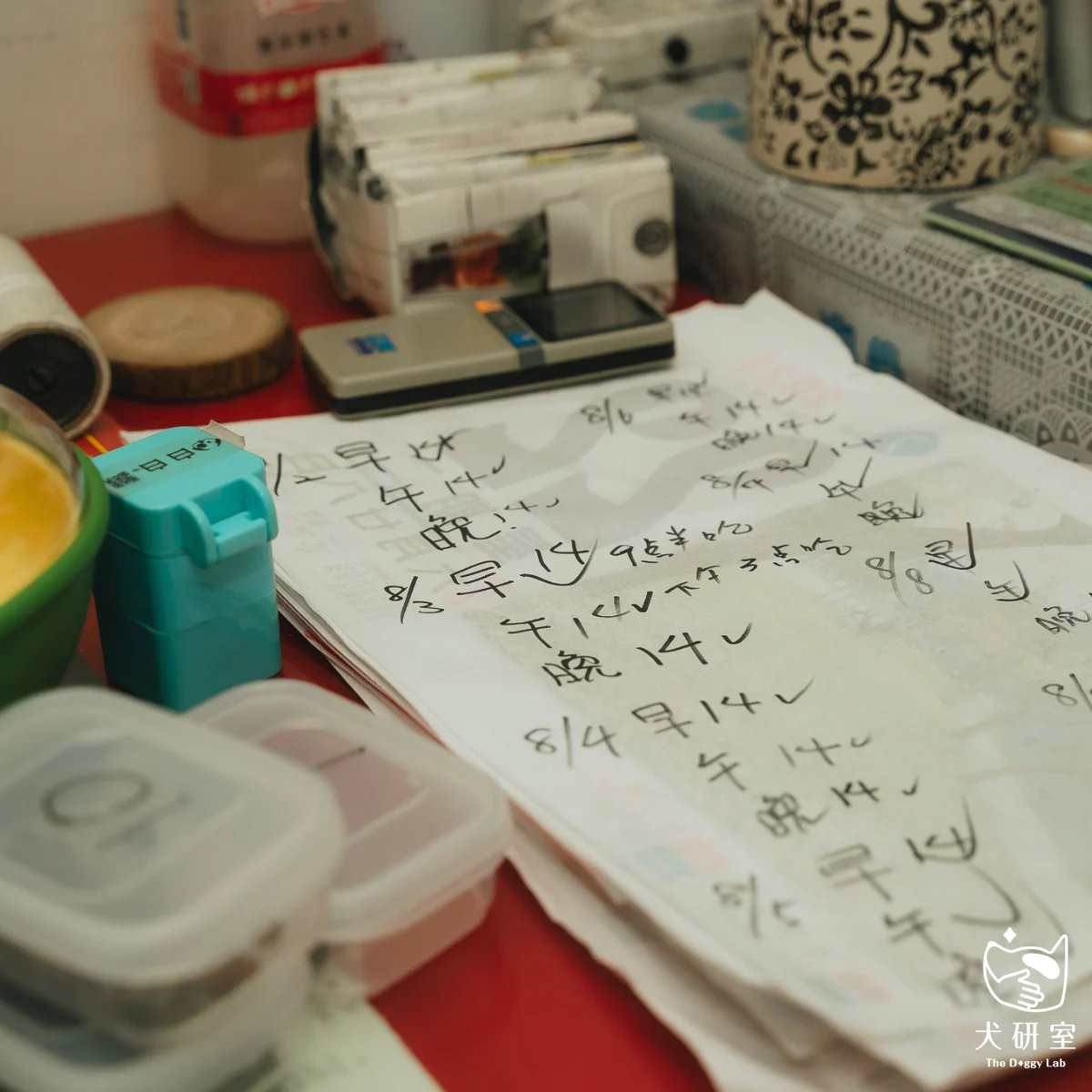 菲力老師為白白設計了一套專屬的餵食方式,請媽媽與阿嬤一同執行。阿嬤一開始心疼白白,不忍心照著調整去做,但在老師耐心的解釋和陪伴下,阿嬤願意試試看。沒想到短短一週後,白白真的開始乖乖吃飯。見到效果,阿嬤也越來越樂意配合。媽媽更是貼心地幫阿嬤分裝好飼料,方便餵食,並且每天細心紀錄白白的狀況。這份堅持,讓訓練真正落實下來。