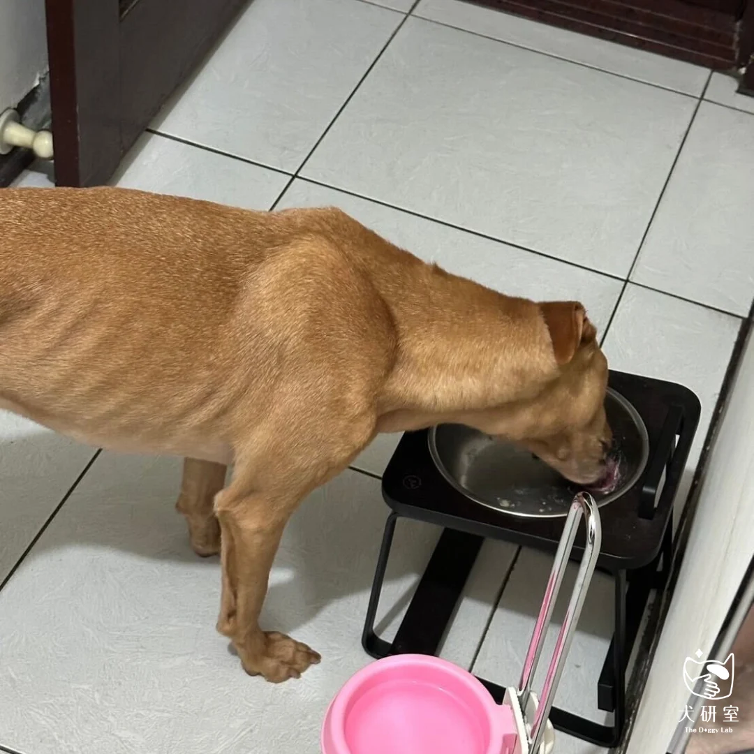 為了讓家維進食,媽媽每天親自用湯匙餵家維吃飯,一餐至少要哄一小時才吃完,也就是一天要花上兩小時在餵飯上面。從一開始的飼料不吃,慢慢變成加一點鮮食,到後來連全部都是肉肉都不要了,這讓媽媽陷入了困境,已經不知道該餵家維吃什麼了,進而尋求犬研室的幫助。